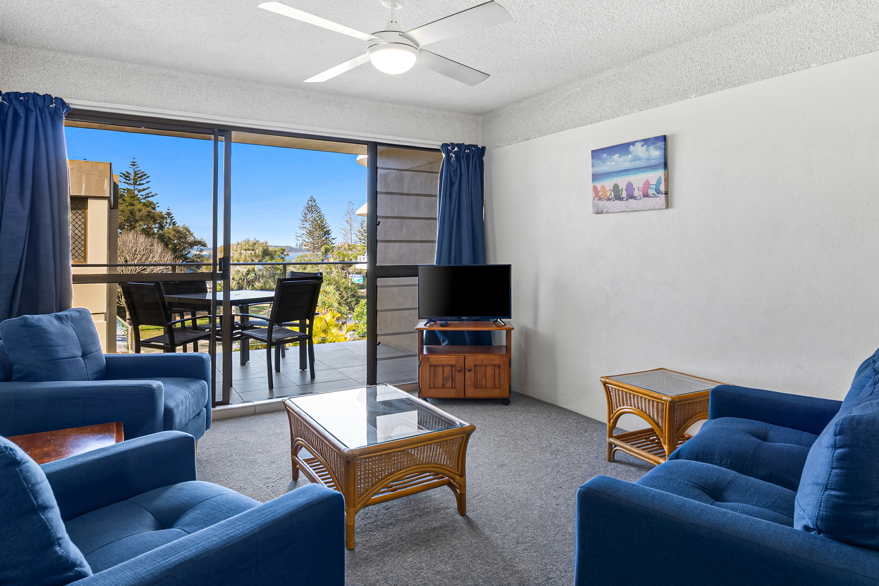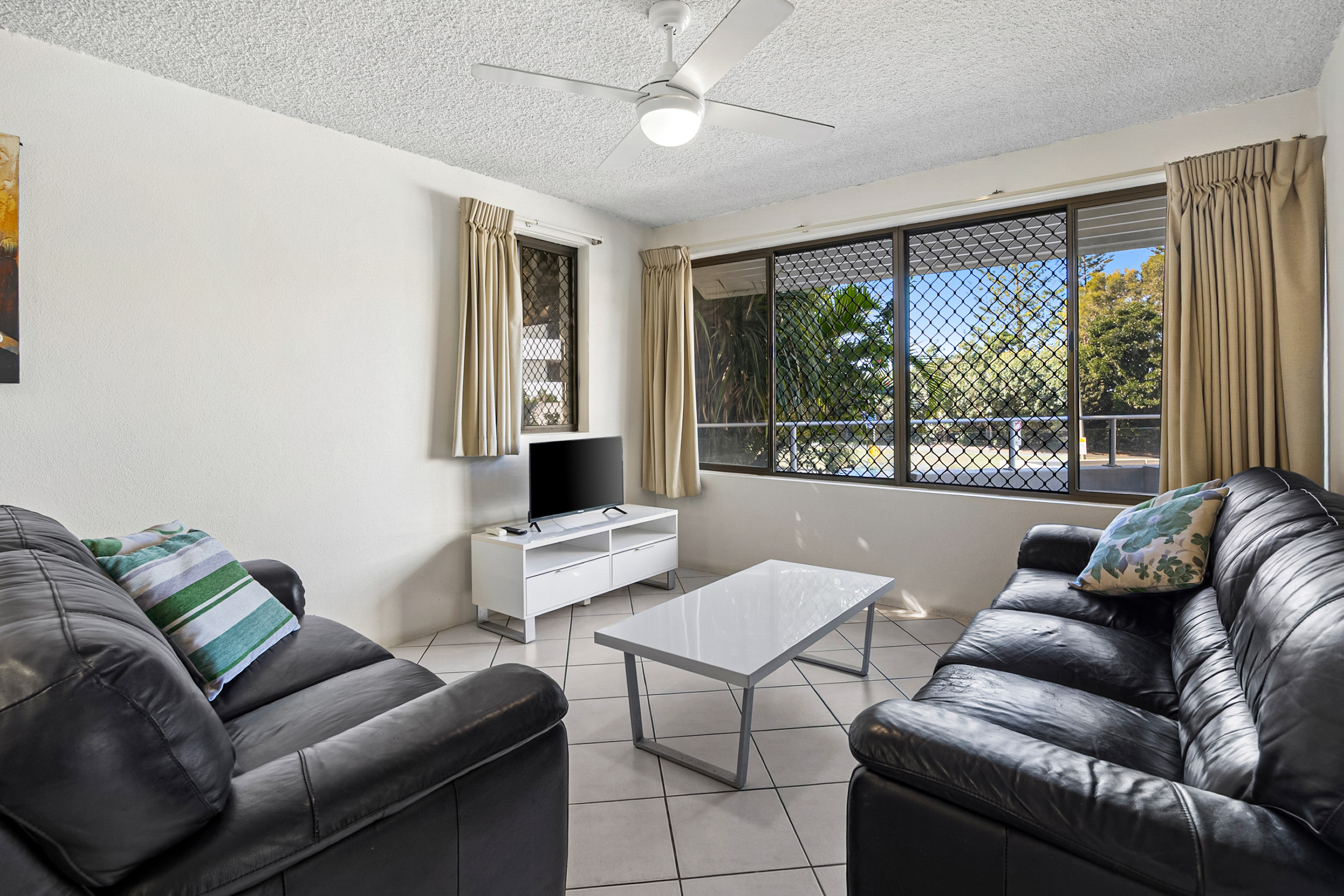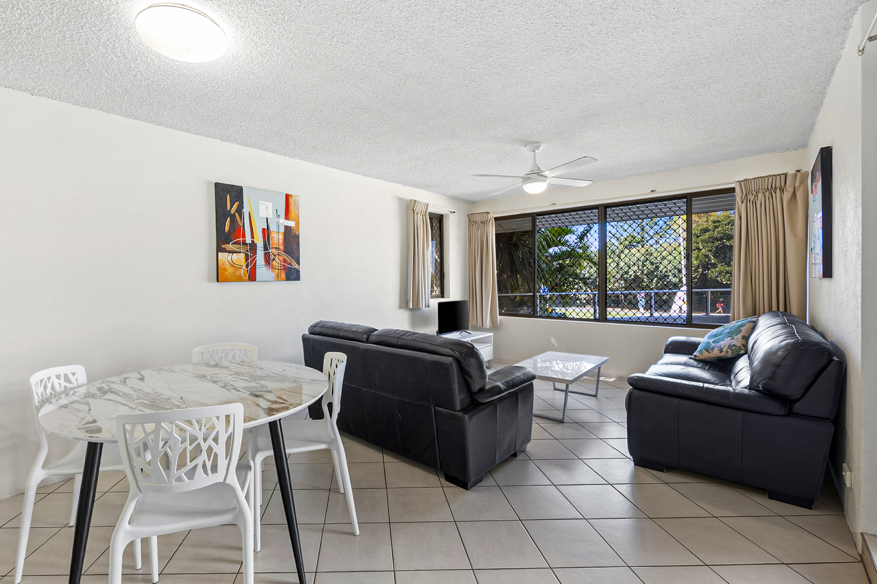 All apartments are privately owned and have different layouts with contrasting and DATED furnishings. They are comfortable with rendered, painted walls and varied views based on location within the property. These apartments are air-conditioned in the bedroom only and fans in the living area. Apartments have a Queen bed in the main bedroom and two single beds in the second bedroom. They comfortably accommodate 4 guests. Some rooms have a shower over the bath, others have walk in showers - - please ensure you ring us if you have limitations of any kind.. THERE ARE NO LIFTS, so access to higher floor apartments are via stairs. Pets of any kind are NOT PERMITTED on our property or in the apartments.